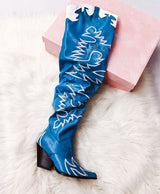 The rowdy saloon comes to starstruck silence when you swing open the doors and stroll in wearing these badass beauties. The Cape Robbin Rock Star Western Over The Knee Boots are old school Western with a sexy makeover, with a pointed toe, chunky heel, faux leather upper and a thigh high slouchy fit shaft, decorated all over in that classic cowboy-style embroidery. Saddle up and show them who’s the boss of this town.